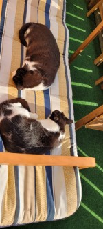 Op de foto zie je Pandy en Tommy na de lunch. Een middagdutje is een must :-)